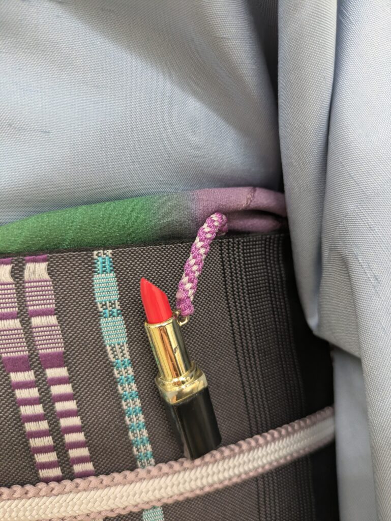 帯の中の紫と、帯締めの淡い紫。