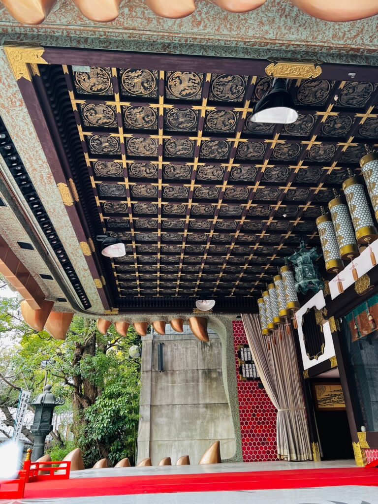 お口の中ですが、天井には真鍮製折腰格天井にはめ込まれている鳳凰の彫刻は全て手彫りだそうですよ!!