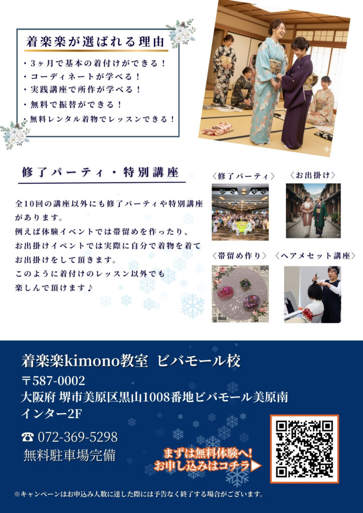 この度、大阪府堺市美原区のビバモール美原南インター2Fにて、「着楽kimono教室 ビバモール校」がグランドオープンいたします!